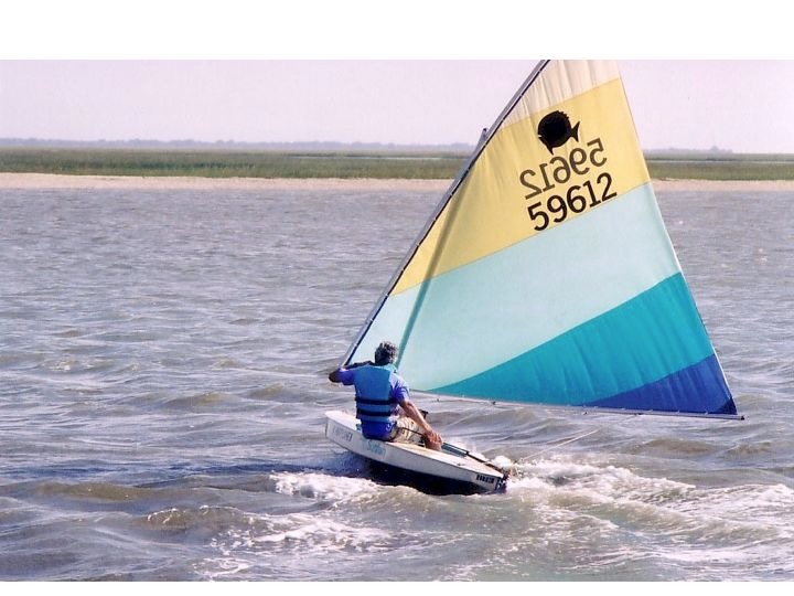 Today’s weather Is dominated by a solid southwest wind. The shortest passage to Bulls Island for me was out Anderson Creek and across Bulls Bay to the Northeast Point, allowing for a reach out and on the return with the predominant sea breeze. Today’s wind is strong enough for planing while on a reach.