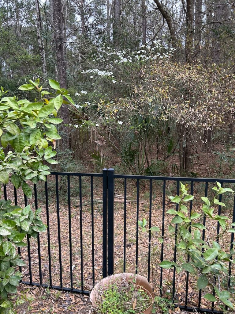I have plant life reaching toward the sun, climbing up on trellises or other plants, shrubs and trees. Both cultivated and wild vines. The SC state flower, yellow jessamine, is bountiful in the woods climbing up pine trees and everywhere it can. Some wild dogwoods are reaching up too, ones coming back from root stock after the tidal surge of Hurricane Hugo had devastated the many dogwoods in the understory of our forested property.