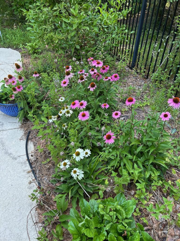 As I walked out Franke(with the aid of a walker) on my discharge morning, I passed by the director of nursing, who said ‘You came in on stretcher and you are leaving walking out.” Finally coming home after 3 months away was a long time. A different greeting awaited at our community sign. Other positive signs appeared: bluebirds occupying a deck nest house, a swallow-tailed kite observed through a skylight. In the garden the peak bloom of echinacea (cone flowers)
