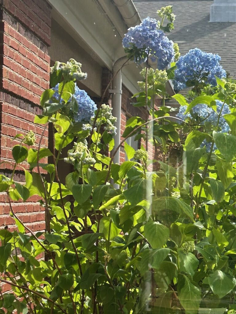 Time became distorted both in the hospital and at Franke. Both places posted large clocks on the wall across from beds. I watched those clocks at night as a result of my poor sleep. Time passed slowly, and I often lost track of days. Outside of a Franke dining room grew a large hydrangea, and day by day the blooms evolved from white to blue, signally a different pace of time – one that I related to.