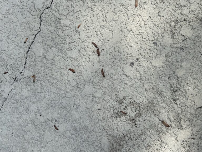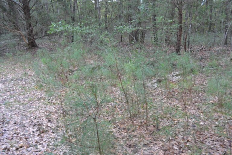 I have learned to appreciate loblolly pines. Their ability to proliferate is impressive – their dispersal of seeds is illustrated by the below photo of a scattering of seeds on a concrete deck. Their rate of growth is rapid, and in our regenerated forest their height has reached to the top of the canopy since 1989.
